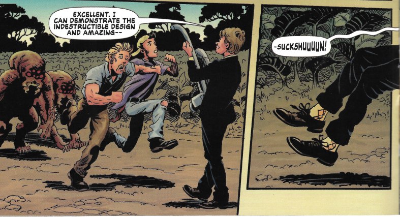 we have Johnny Ray carrying three people in a full on run-away-from-crazy-alien-monsters