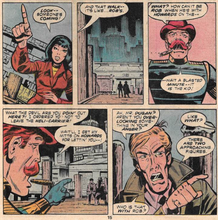 I can just see Moench and Shooter sitting in a haze of pot smoke and Patchouli incense passing a bong and brainstorming this story in between laughing at Duffy because he about chokes himself out coughing on every hit. Gotta love the 70's.